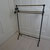 Wunderschöner antiker Handtuchständer mit Messingstangen und einem Eisenfuss. Handtuchständer aus Metall findet man sehr selten, aus Holz schon eher. Abmessungen: Höhe: ca. 91 cm, Breite: ca. 62 cm und Tiefe: ca. 21 cm.