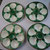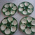 2 Sets von Vintage Longchamp Austernteller aus Keramik in Grün und Creme aus den 50er Jahren. Set 1 besteht aus 6 Tellern, das Set 2 aus 4 Tellern und einer grossen Servierplatte. Die Sets sind nicht gemarkt, wobei es offensichtlich ist, dass diese wunderbaren Stücke von Longchamp stammen müssen. Sie befinden sich in einem wunderbaren Erhaltungszustand, haben allerdings einen leichten Berieb in der Glasur, aber keine Abplatzer. 2 Teller haben von der Handbemalung 2 Farbkleckse.
