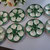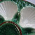 Sehr schöne besondere Austernteller / Muschelteller von Fayence de St. Amand. Sie sind aus Steingut gefertigt. Sie sind in verschiedenen ineinander fließenden Grüntönen von lindgrün bis moosgrün gehalten. Jeder für sich ein Unikat aufgrund der Handarbeit. Die Glasur auf der Unterseite weist Kraquele auf. Durchmesser: 24,5 cm